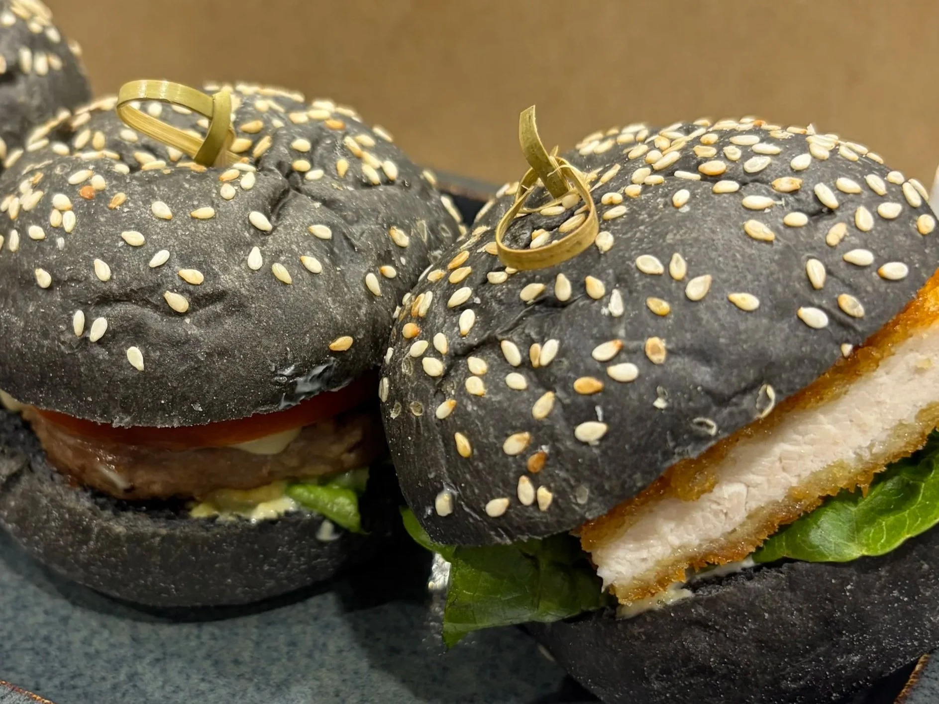 Mini charcoal brioche buns filled with: