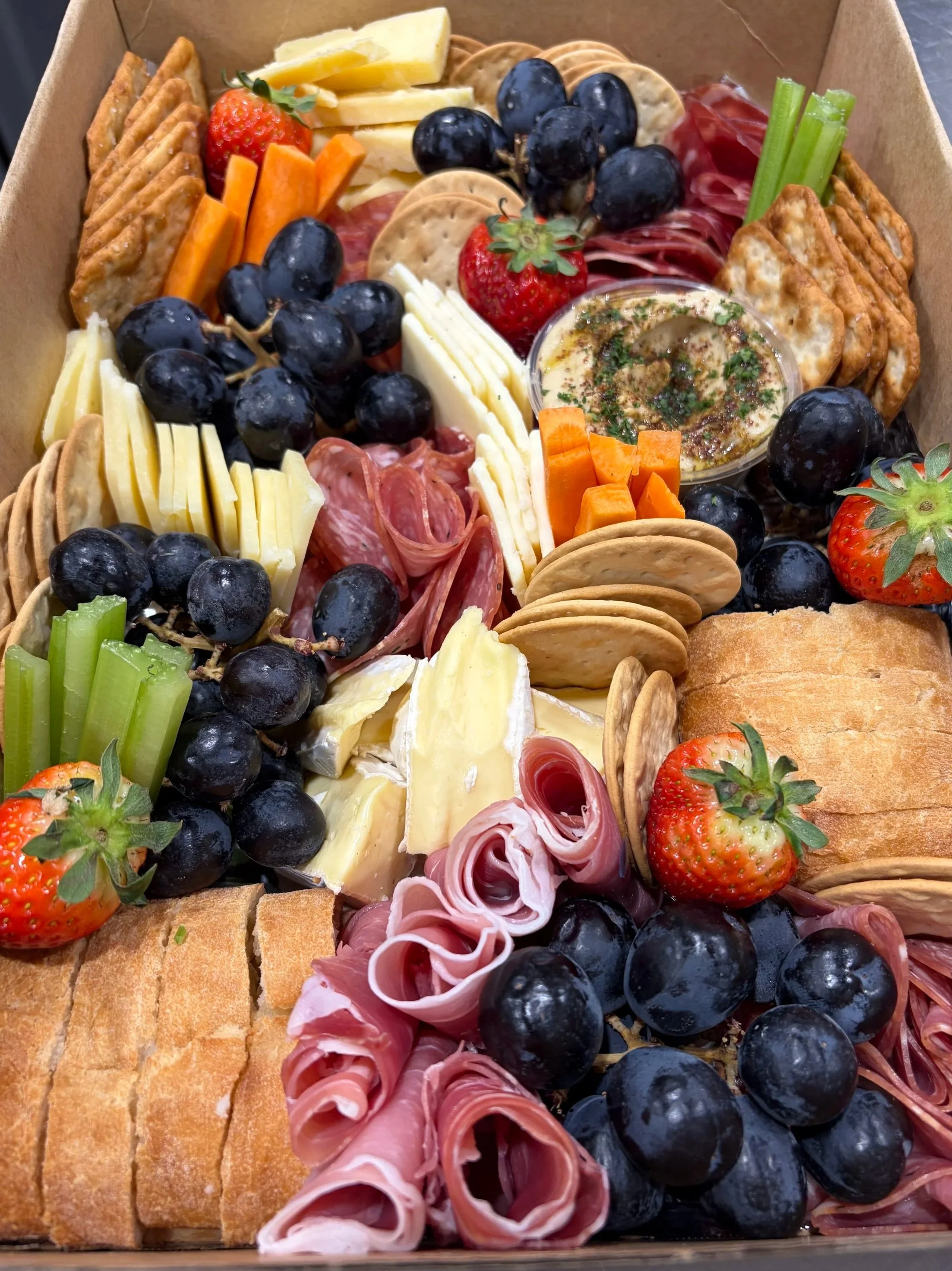 A crowd favourite — brimming with deli meats, artisan cheeses, dips, fresh fruit, crackers & bread.